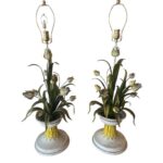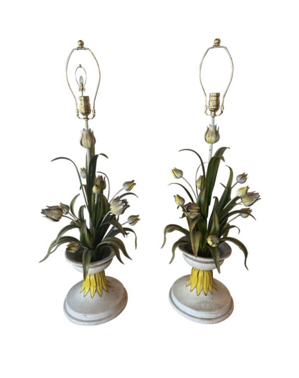 SOLD Vintage Pair of Italian Tole Flowers Urn Table Lamps Newly Wired