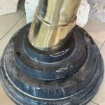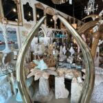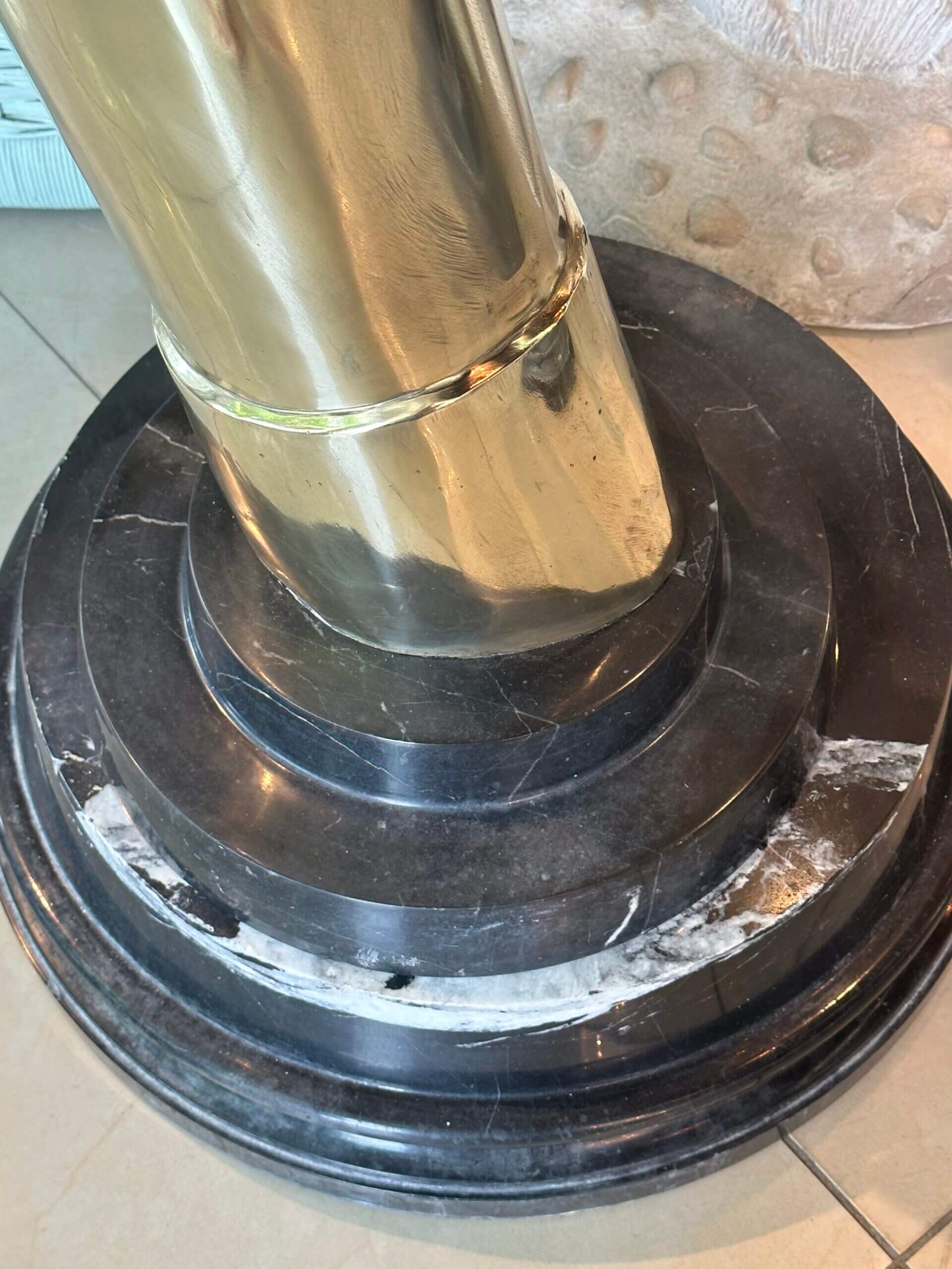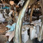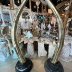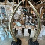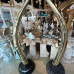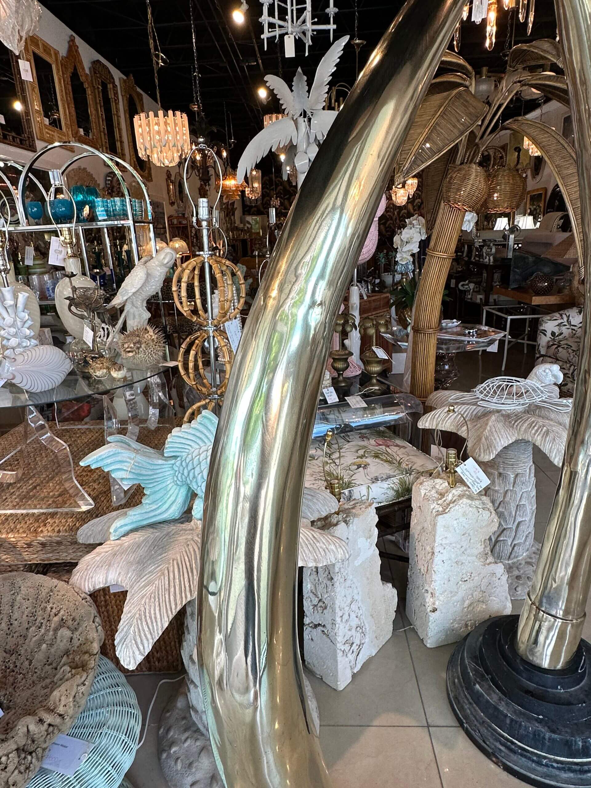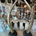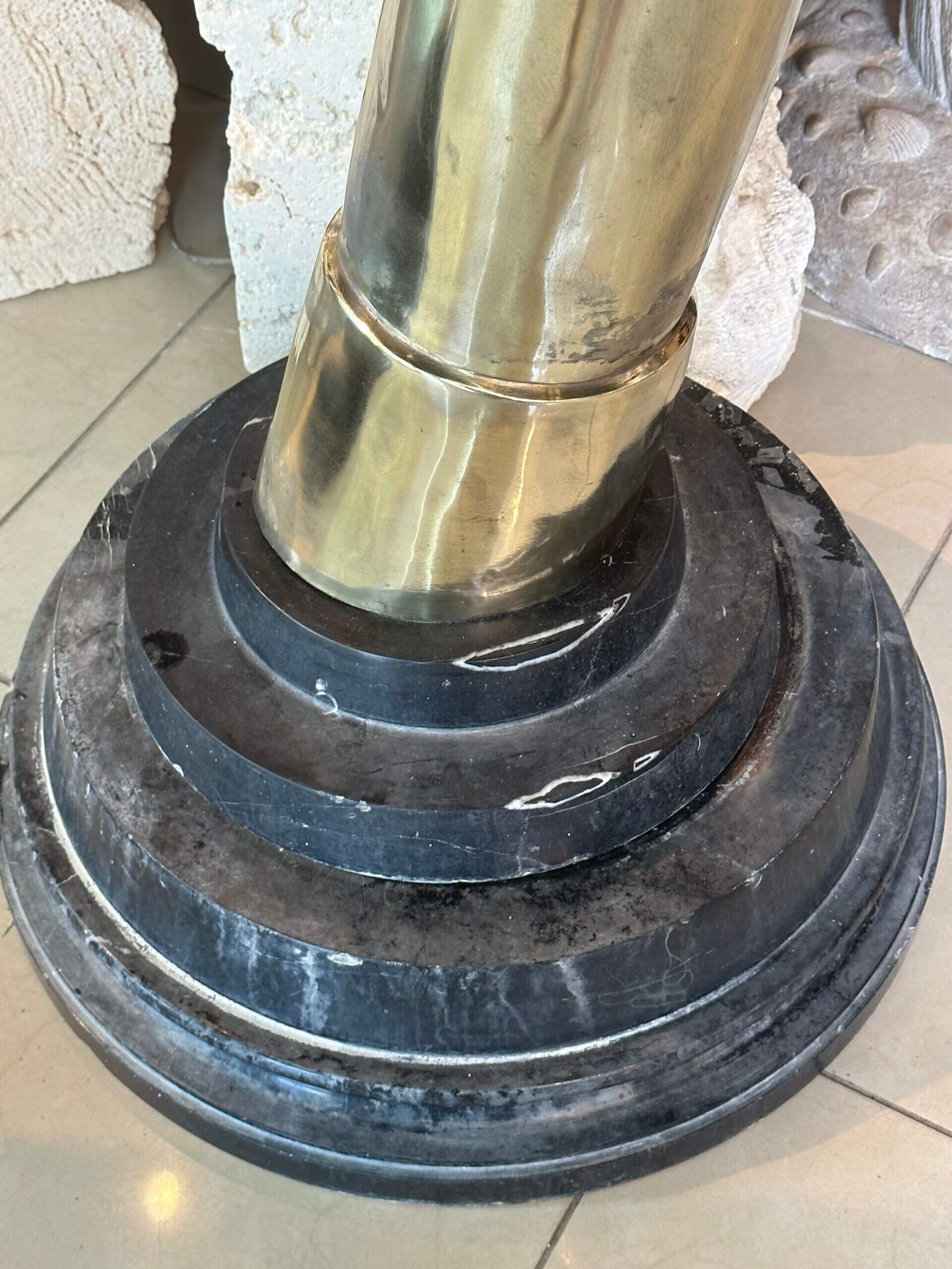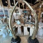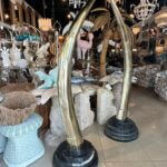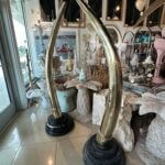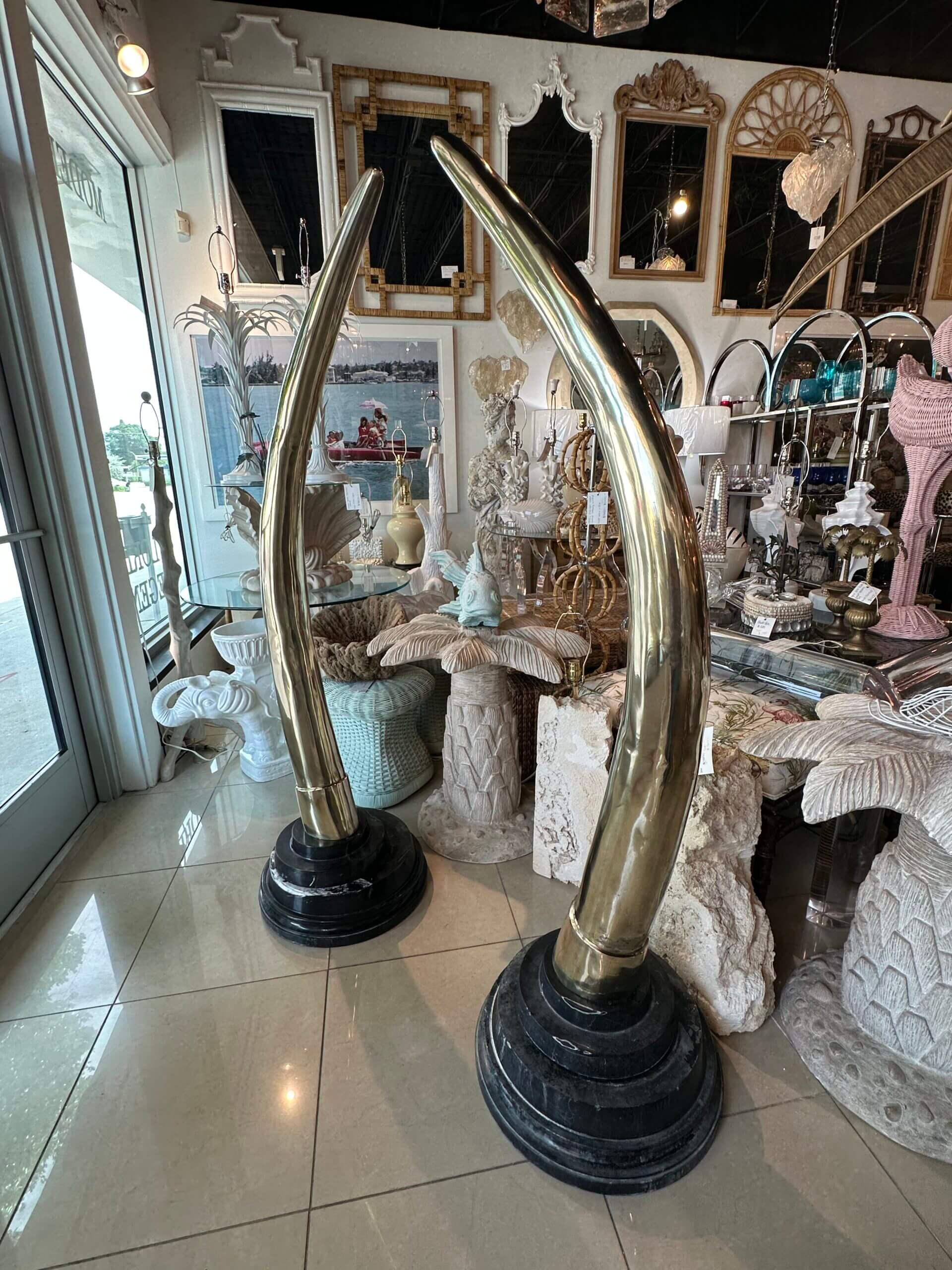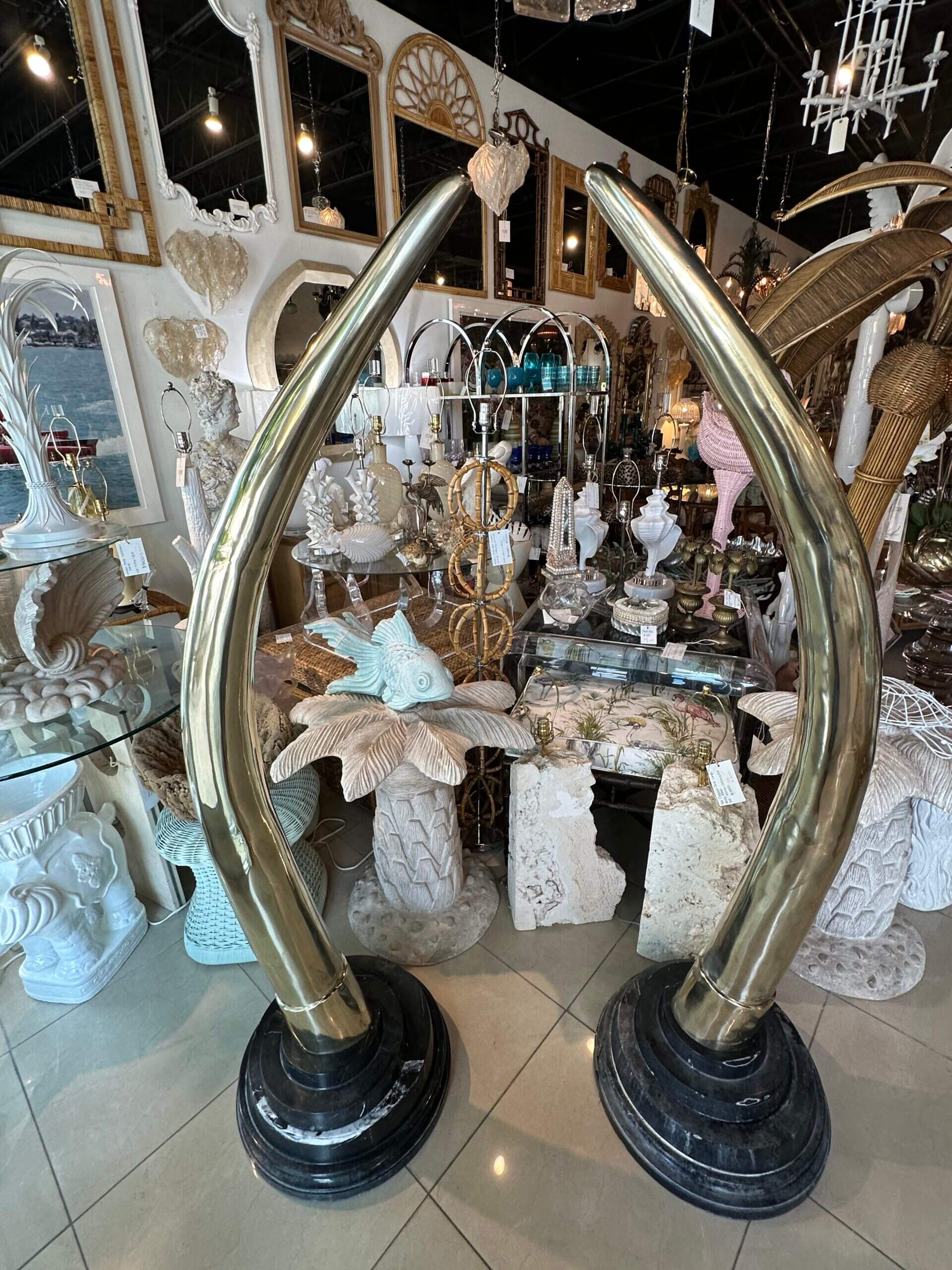 SOLD Vintage Pair 1970s Monumental Brass & Marble Faux Elephant Tusks Life Size
