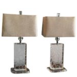 SOLD Van Teal Lucite Table Lamps, Pair Signed Giraffe Pattern Linen Lampshades