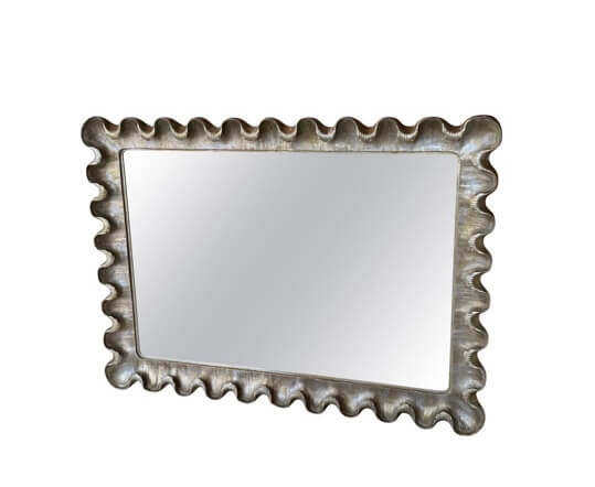 SOLD Venetian Italian Silver & Gold Gilt Wood Gesso Scalloped Ruffle Wall Mirror
