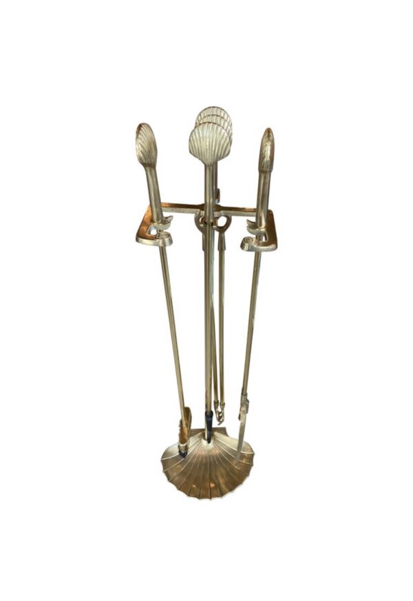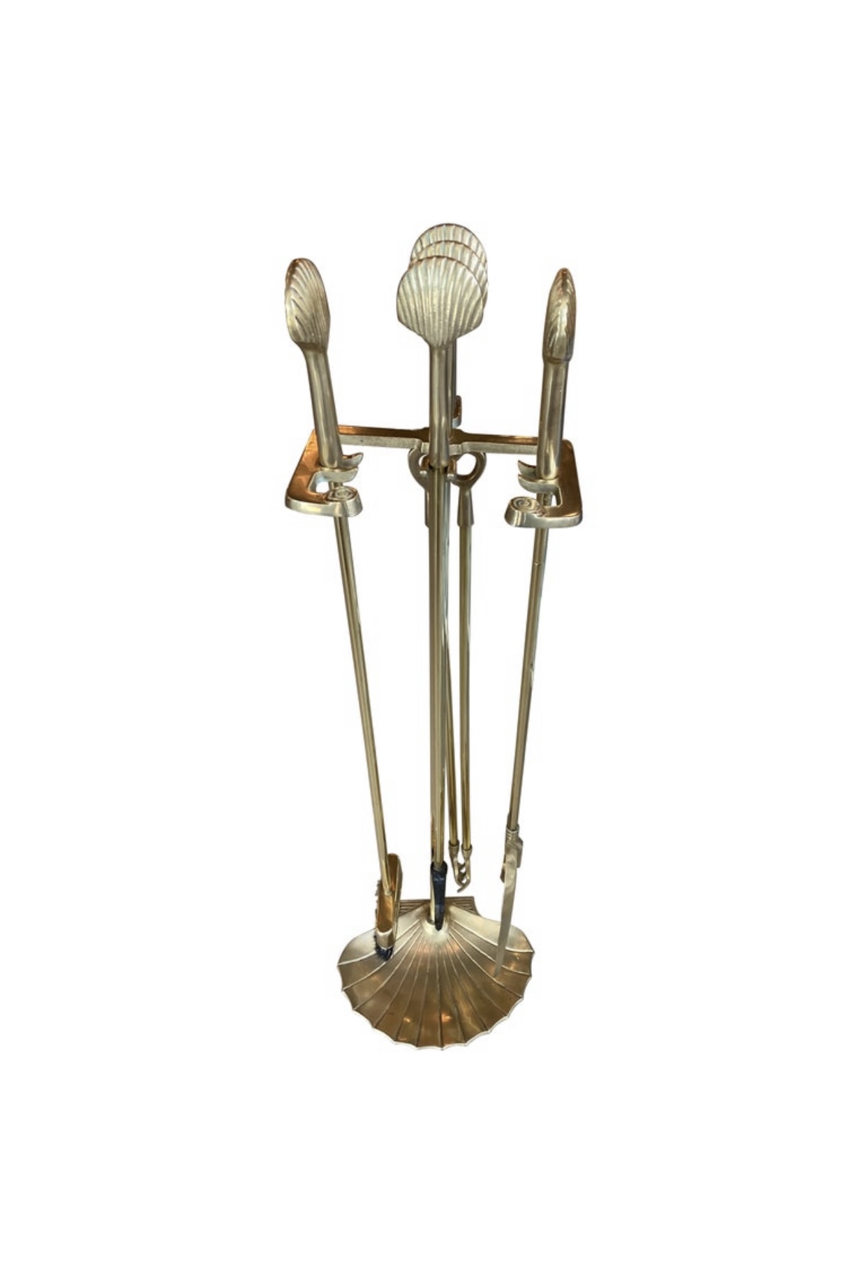 SOLD Vintage 5 Piece Brass Palm Beach Seashell Shell Fireplace Tools Set
