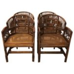Vintage set of 4 Brighton style rattan, Chinese Chippendale arm dining chairs. No breaks or missing pieces.