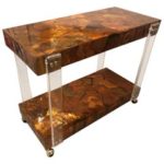 SOLD Vintage Brutalist Mixed Metals Brass Copper Patchwork Lucite Bar Cart