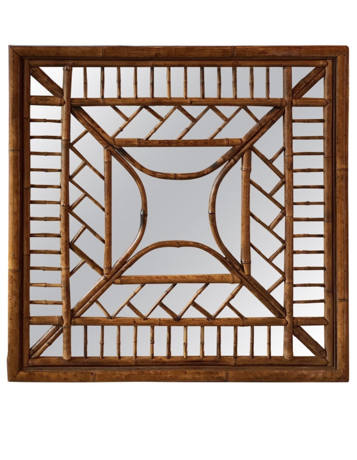 SOLD Vintage Burnt Tortoise Shell Bamboo Rattan Wall Mirror