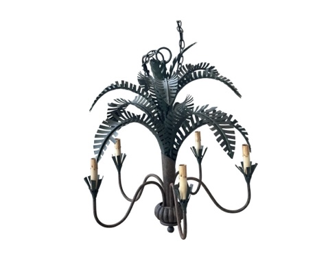 Tags: 5 light, chandelier, leaves leaf frond, metal tole, Palm Tree, tropical