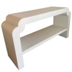 SOLD Vintage Curved Grasscloth Linen Cream Console Table with Shelf