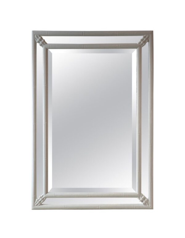 SOLD Vintage Faux Bamboo White Lacquered Wall Mirror Horizontal or Vertical