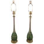 SOLD Vintage Green Swirl Glass Murano Pair Table Lamps Brass Lucite Italian