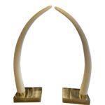 Vintage pair of faux elephant tusks with brass gold base. These are NOT real. Large, statement pieces. There are scratches and some indent areas on the gold base (pictured).