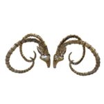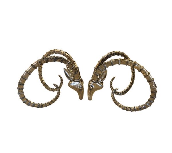 SOLD Vintage Hollywood Regency Pair Brass Ibex Rams Head Cocktail Coffee Table