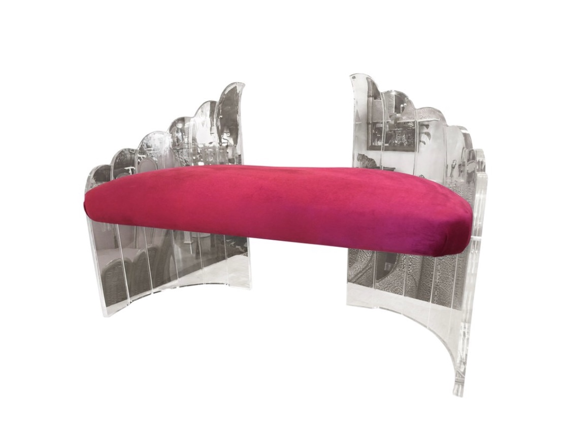 SOLD Vintage Lucite Bench Pink Velvet Cushion Hollywood Regency