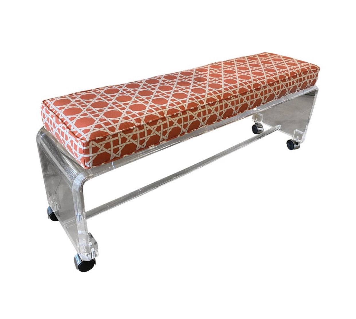 SOLD Vintage Lucite Waterfall Bench Newly Upholstered Coral