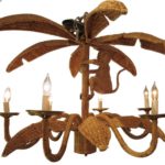 SOLD Vintage Mario Lopez Torres Wicker Rattan Monkey Palm Tree Tropical Chandelier 6 Light