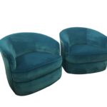 SOLD Vintage Milo Baughman Blue Velvet Walnut Base Swivel Chairs