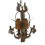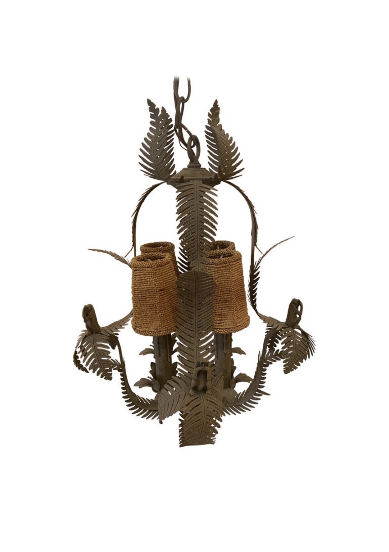 Vintage monkey and palm leaf leaves chandelier with 4 original shades and matching ceiling cap.