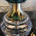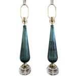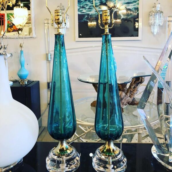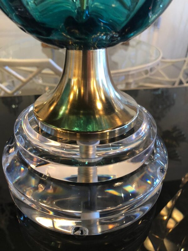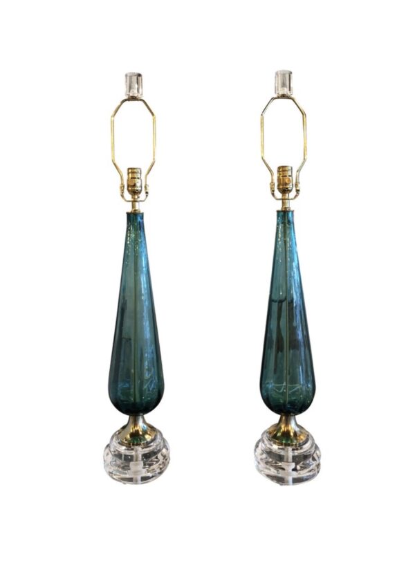 SOLD Vintage Murano Aqua Blue Glass Brass Lucite Table Lamp A Pair
