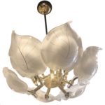 SOLD Vintage Murano Italian Glass and Brass Tropical Palm Beach Leaf Chandelier