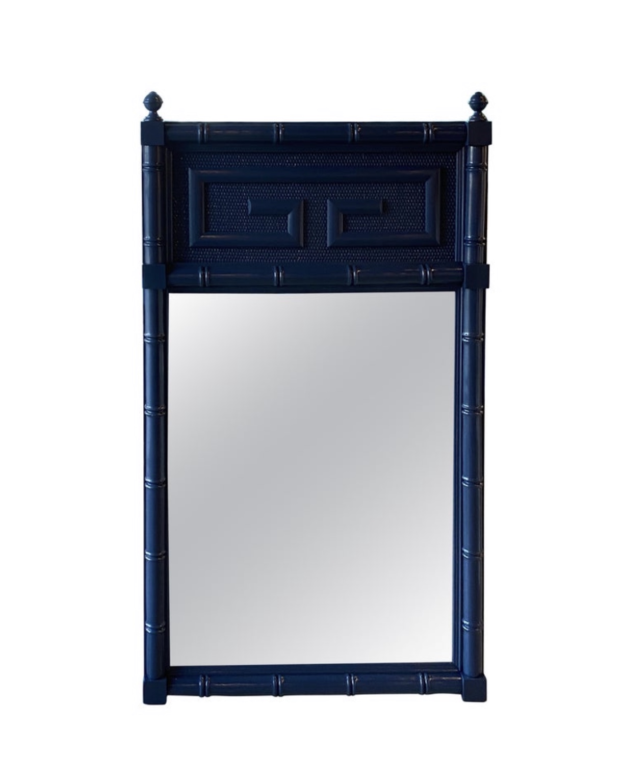 SOLD Vintage Navy Blue Lacquered Greek Key Faux Bamboo Wall Mirror