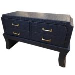 SOLD Vintage Navy Blue Lacquered Woven Wicker Chest Dresser Credenza Brass Pulls