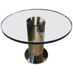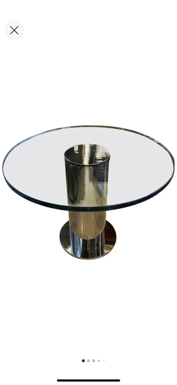 Vintage Pace Collection chrome column base center or entry table. The glass will need to be replaced as it has some chips on the edges. Chrome has been professionally polished. Glass pictured is 36″. Dimensions below are of the base only.