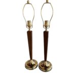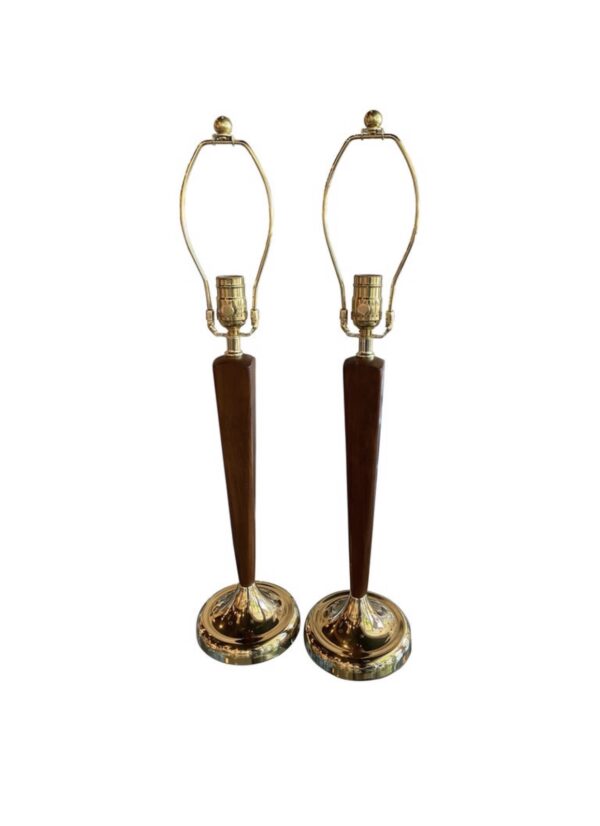 SOLD Vintage Pair Mid-Century Modern Danish Wood & Brass Table Lamps Restored