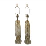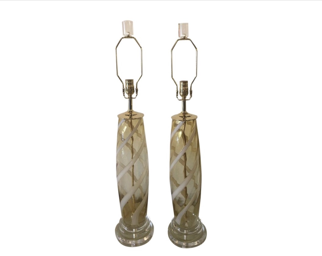 SOLD Vintage Pair Murano Glass Table Lamps Amber Yellow Lucite Brass