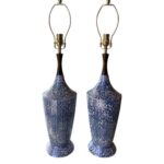SOLD Vintage Pair of Blue and White Ceramic Table Lamps Mid Century Modern Rewired