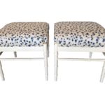 SOLD Vintage Pair of Blue White Upholstered & Lacquered Faux Bamboo Benches Ottomans
