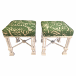 SOLD Vintage Pair of Faux Bamboo White Lacquered Palm Tree Upholstered Stools Benches