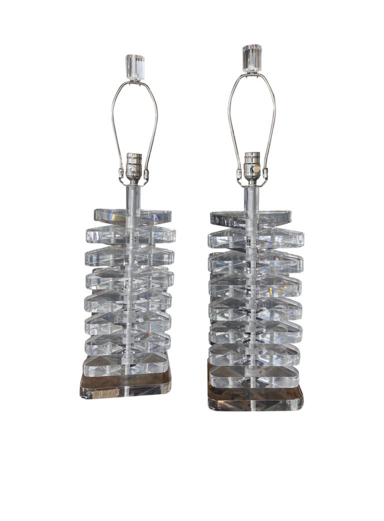 SOLD Vintage Pair of Large Stacked Lucite Table Lamps New Chrome Hardware & Rewired