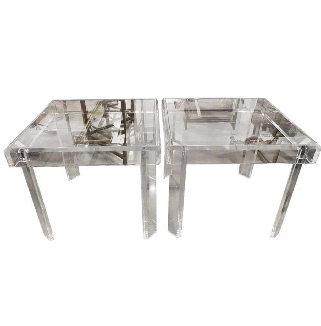 Vintage pair of lucite and glass end side tables. New glass tops have been cut for these.