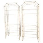 SOLD Vintage Pair of Metal Faux Bamboo Pagoda Etageres Newly Powdercoated Shelves