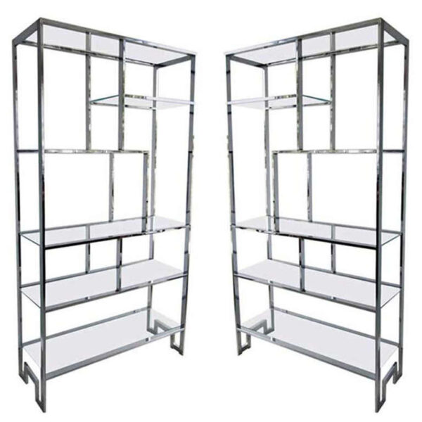 SOLD Vintage Pair of Milo Baughman Chrome Etageres Shelves