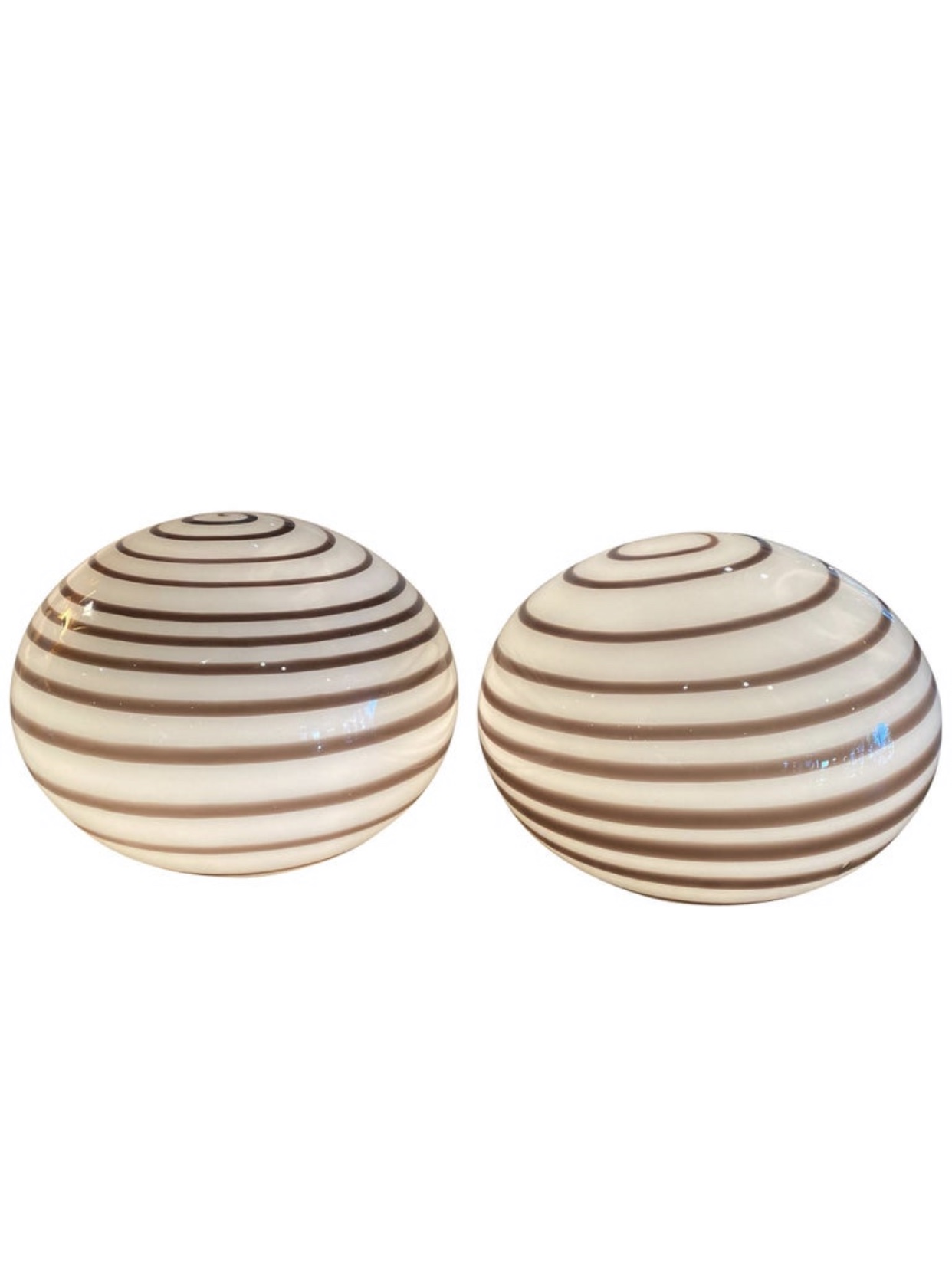 SOLD Vintage Pair of Murano Glass Brown Swirl Ball Round Table Lamps