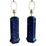 SOLD Vintage Pair of Navy Blue & Brass Ceramic Faux Bamboo Table Lamps Newly Wired
