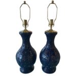 SOLD Vintage Pair of Navy Blue Plaster Table Lamps Brass Newly Wired