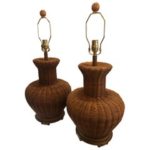 SOLD Vintage Pair of Oversized Wicker Ginger Jar Table Lamps