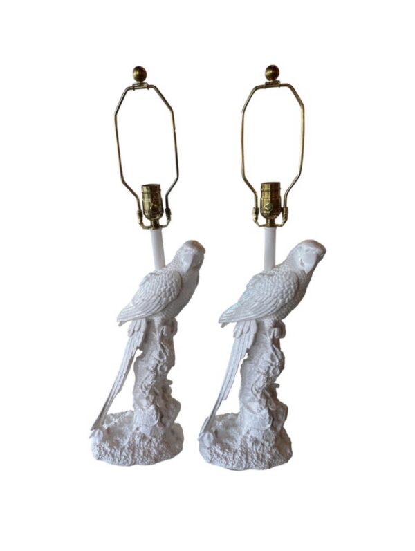 SOLD Vintage Pair of White Parrot Bird Table Lamps