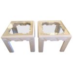 SOLD Vintage Pair of White Lacquered Wavy Swirl Modern End Side Tables