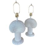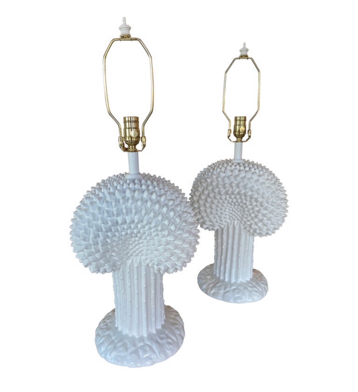 SOLD Vintage Pair of White Plaster Modern Cactus Table Lamps