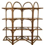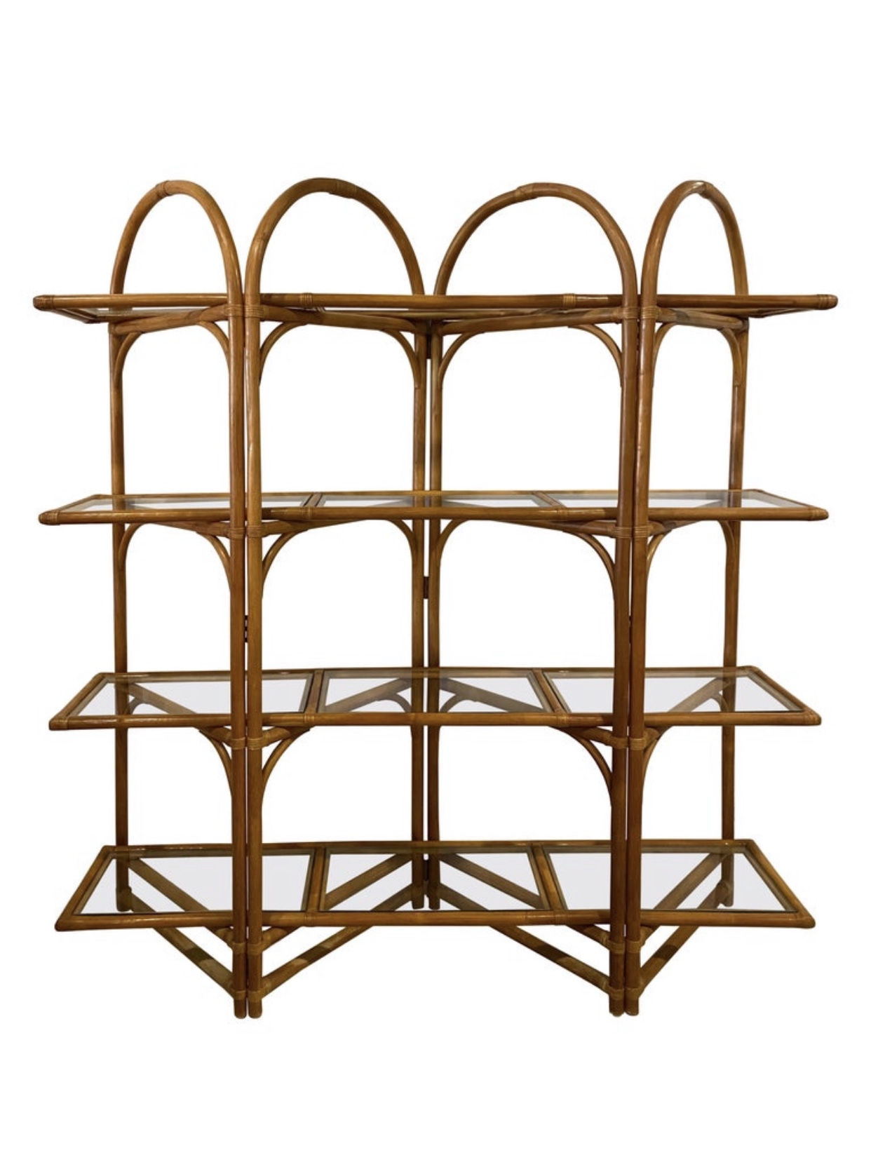 SOLD Vintage Palm Beach Rattan Arched Glass Shelves Display Shelf Etagere