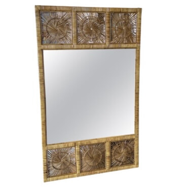 SOLD Vintage Palm Beach Spun Woven Wicker Rattan Sunburst Starburst Wall Mirror Large