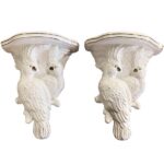 Lovely pair of vintage cockatoo parrot bird white ceramic wall sconces. No chips or breaks. Ready to hang on the wall.
