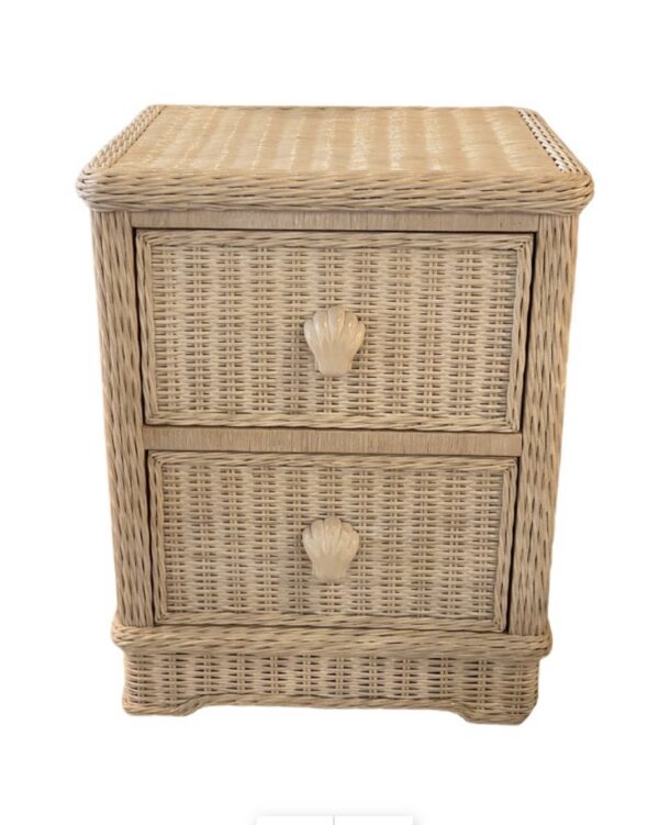 SOLD Vintage Palm Beach Wicker Nightstand Chest of 2 Drawers Shell Pulls