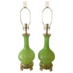 SOLD Vintage Paul Hanson Pair of Apple Green Opaline Glass Brass Table Lamps