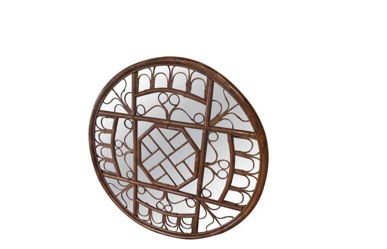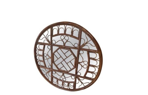 SOLD Vintage Rattan Bamboo Tortoise 1970s Chinese Chippendale Round Wall Mirror
