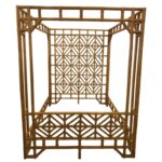 SOLD Vintage Rattan Chinese Chippendale Queen Size Canopy Bed