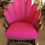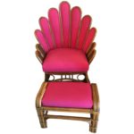 SOLD Vintage Rattan Wicker Peacock Fan Back Arm Chair & Ottoman Footstool Upholstered