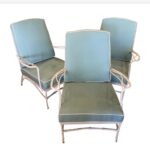 SOLD Vintage Set of 3 Faux Bamboo Powder-Coated Lounge Club Patio Chairs Sunbrella