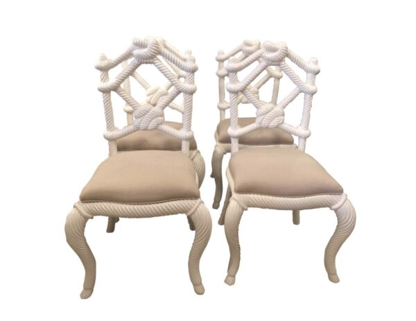 SOLD Set of 4 Kelly Wearstler from Viceroy Miami of Additional 12 Available Rope Wood Nautical Beach Side Dining Chairs White Lacquered